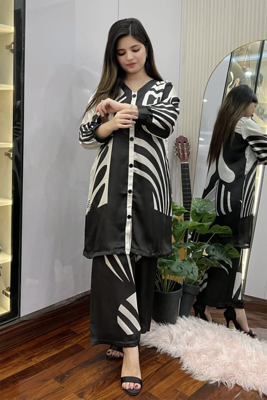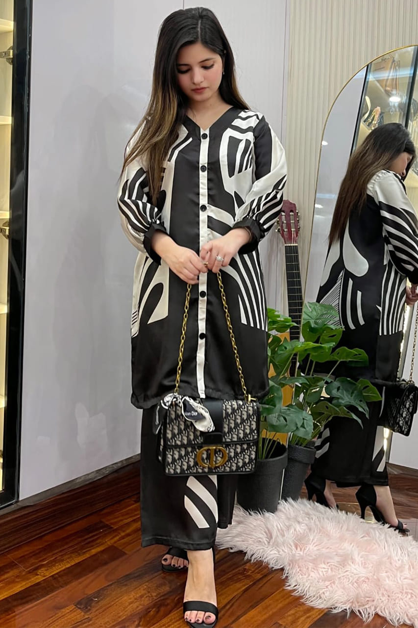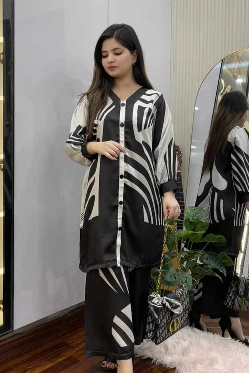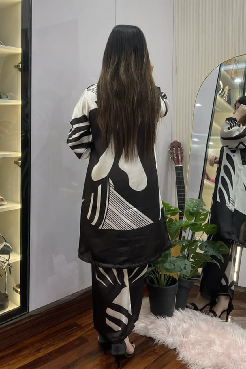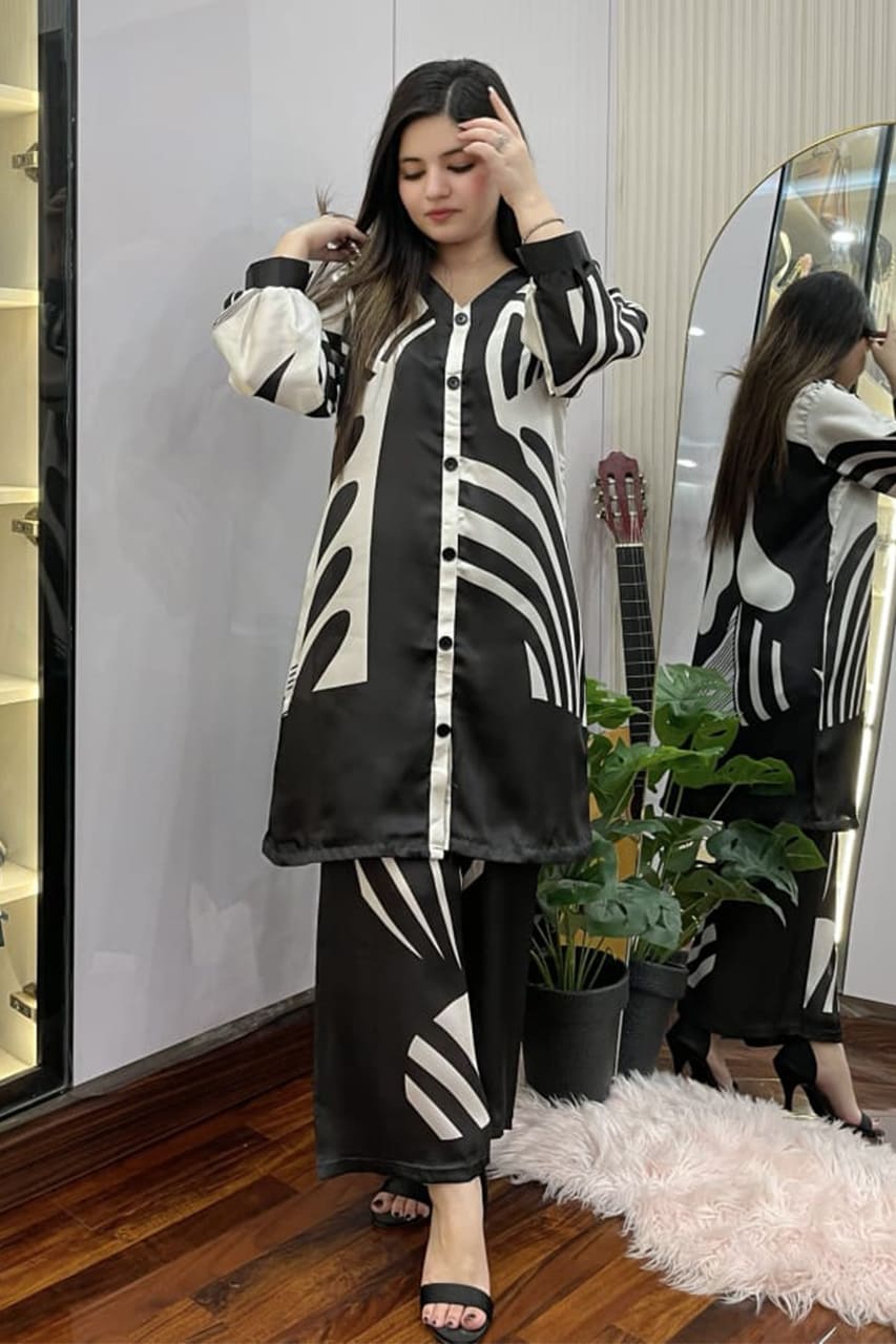 This outfit is stitched in Shamooze Silk brand fabric and comes as a clean, brand-stitched article designed for everyday wear. It features a stitched shirt paired with a trouser.