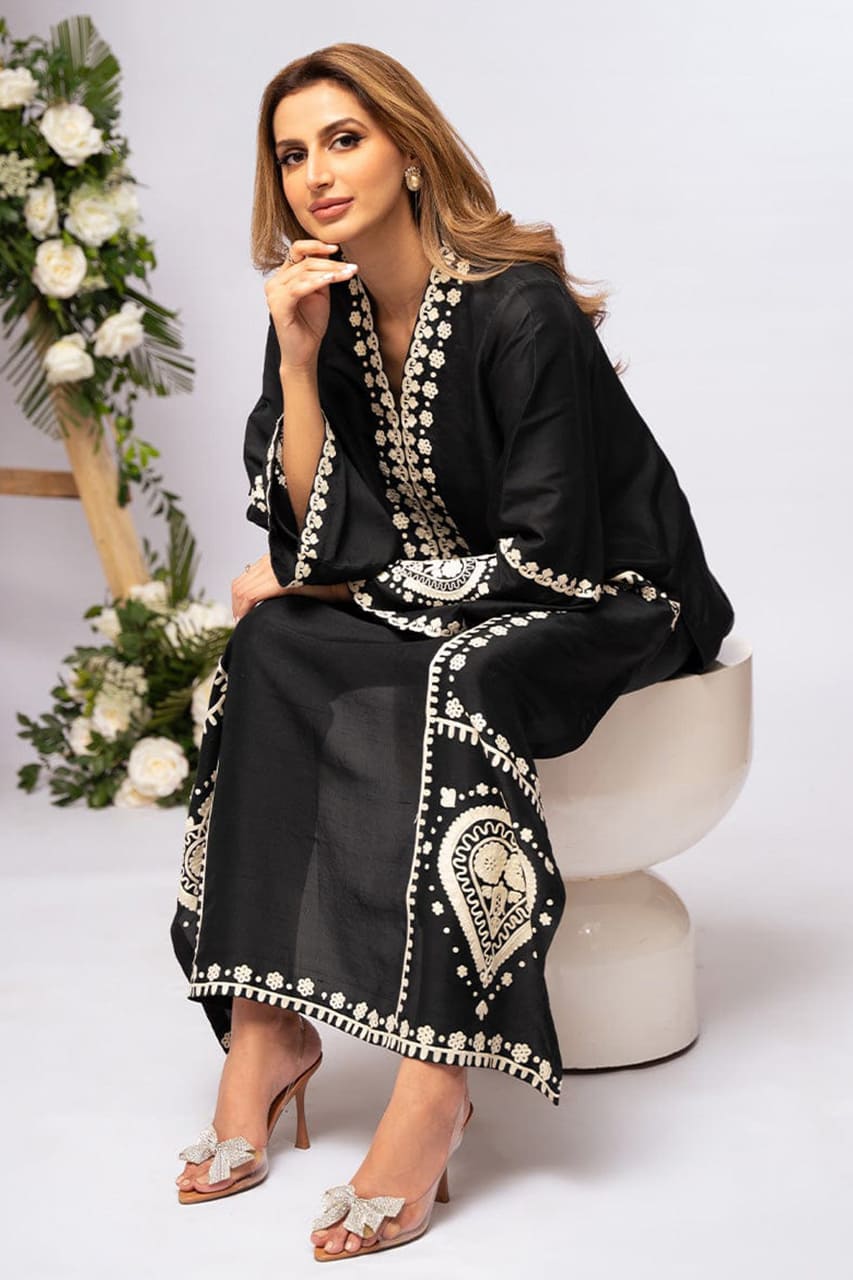 This outfit is stitched in Stone Linen brand fabric and features an embroidered long-length shirt paired with a plain trouser. It is designed in a simple yet most demanding embroidered style.